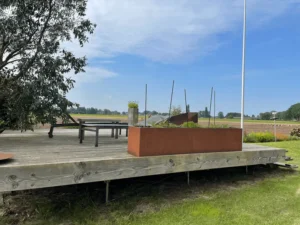 De fundering is volledig onderhoudsvrij. RVS is bestand tegen vocht en roestvorming, waardoor je jarenlang zorgeloos kunt genieten van je vlonder, zelfs in vochtige of bosrijke omgevingen.